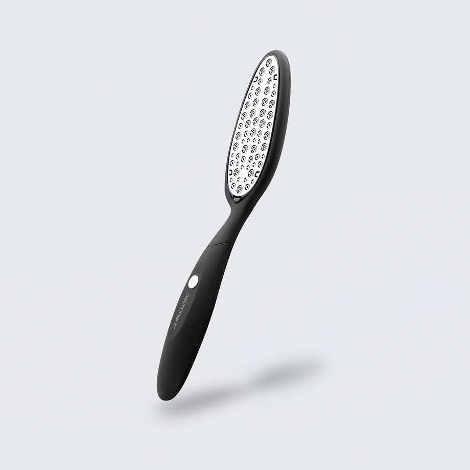 A comfortable and light soft touch handle, along with it's unique concave high-quality stainless steel inlay, this file only removes rough skin, ensuring that healthy skin is not damaged.